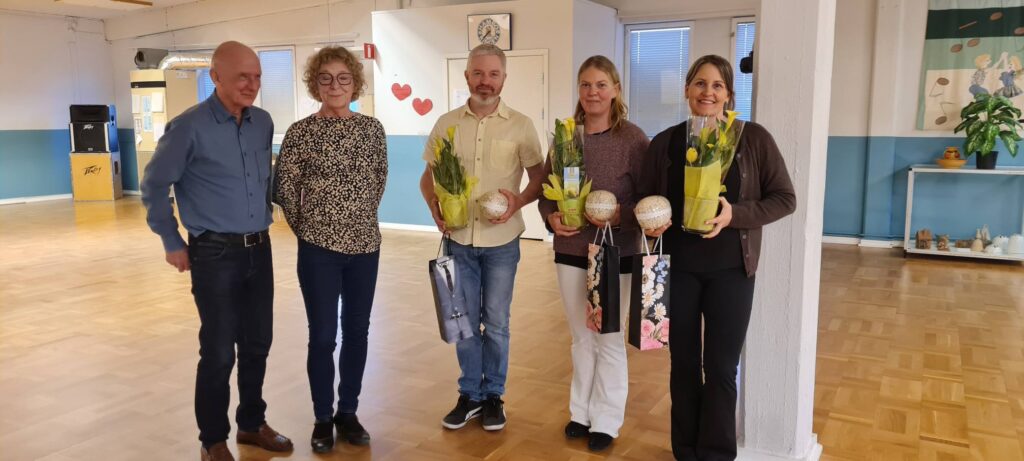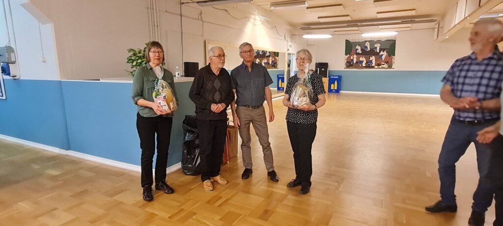 Därefter var det dags för gillelagets ledare Bengt, Lisbeth, Rolf och Birgit att komma fram och av Jonny och Ronny ta emot en present med lite smått och gott i. Jonny berättade också lite från våra danskvällar och kommande uppvisningar.
