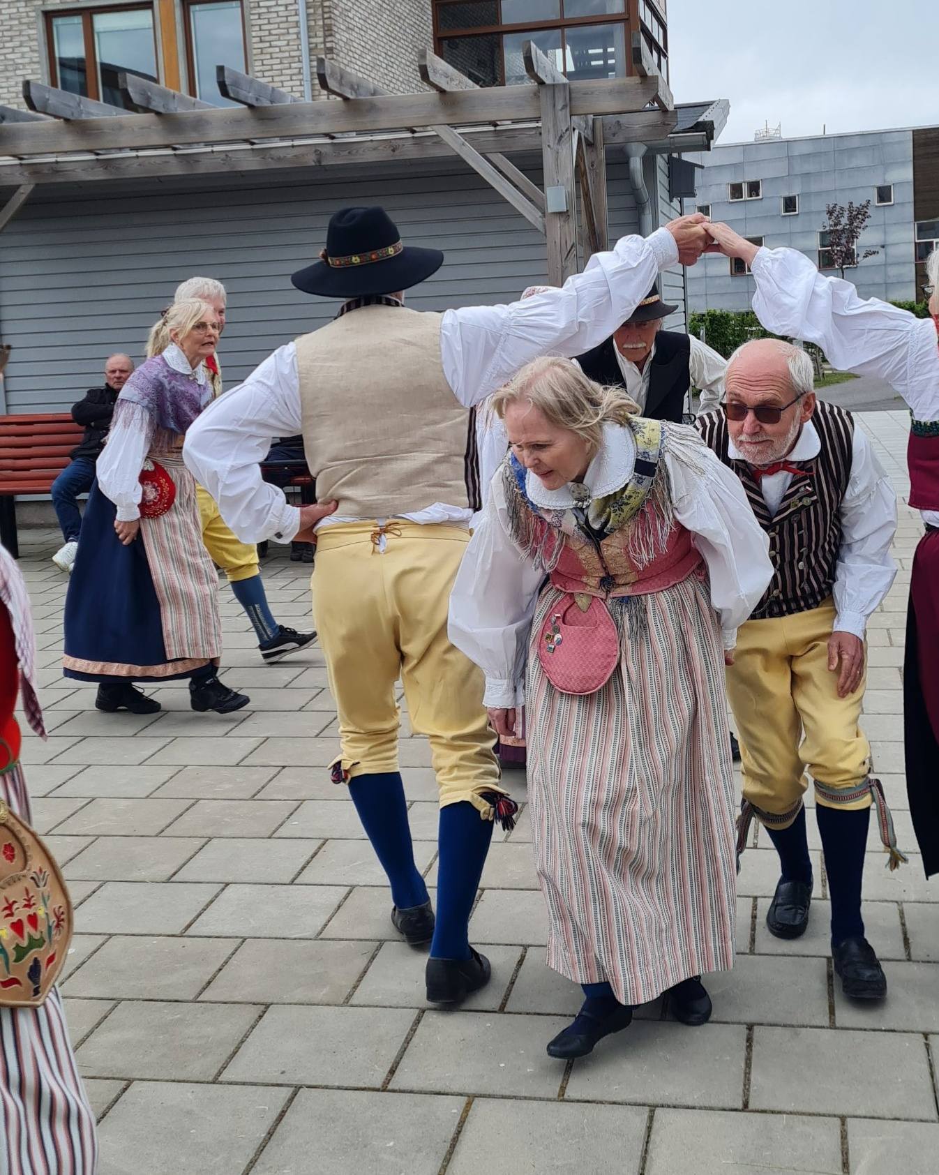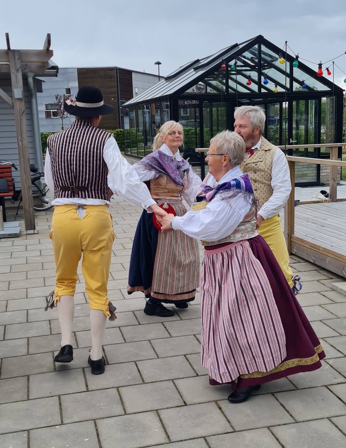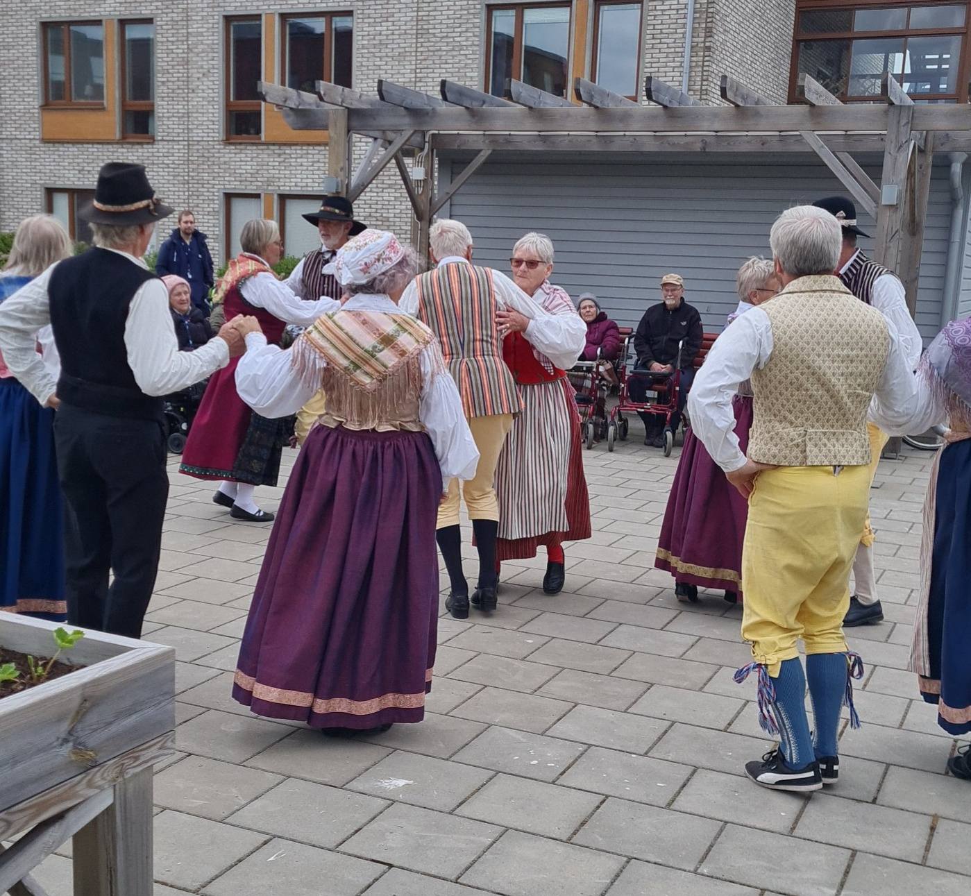 Trots vädret dansade vi ute i deras fina trädgård. Det var flera i publiken som själva hade dansat folkdans tidigare i sina liv.