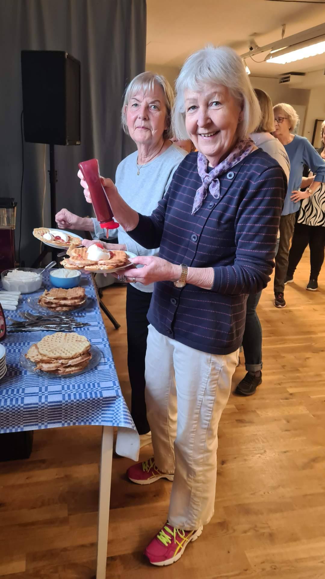 Det smakade bra med våfflor med grädde och sylt till kaffet. Ett mycket fint initiativ av våra dansledare.